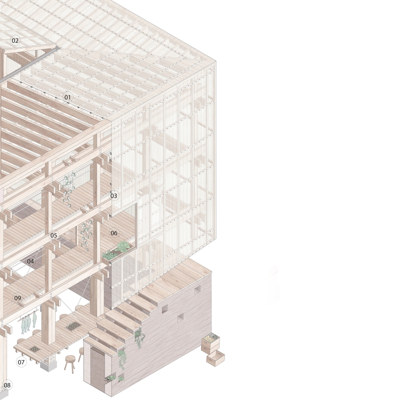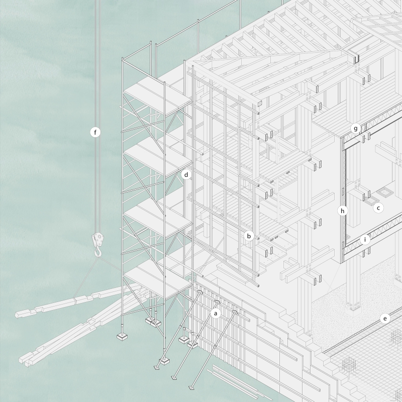 KONSTRUIEREN „Es gibt keine Probleme, nur Fragen. Und das ist die eigentliche Arbeit.“ (1) Um allseits verfügbares, konstruktives Vokabular in das Arsenal des eigenen, architektonischen Handlungsrahmens zu überführen, lohnt es sich, „ausgewählte Werke »zur Sprache zu bringen« - mit Vorliebe“ (2) in eine Sprachform der Architektur, die Zeichnung. Die hier eingeflossene Doppelung der zeichnerischen Analyse in erstens den Herstellungsprozess und zweitens den gebauten Zustand fokussiert auf die Bedingtheit von konstruktiver Verfasstheit und architektonischem Ausdruck. Diese enge Verbindung wird von Andrea Deplazes in der Einleitung seines Handbuches herausgehoben und findet sich noch direkter im ersten Satz des Kapitels »Zur Bedeutung des Stofflichen« von 1999 wieder: „Entwerfen und Konstruieren ist für mich ein und dasselbe.“ (3) Die englische Übersetzung legt hierbei die Betonung auf den Aspekt des Fügens als eine zentrale Eigenschaft des Konstruierens nahe: „how much architectural expression depends on its constructional composition.“ (4) Das Sprachverständnis zum Wort Verfasstheit könnte auch den Übertrag in „constructive constitution and architectural expression“ (5) sehen. In dieser minimalen Verschiebung findet sich eine spezifische Lesart wieder, welche die Frage, wie etwas gemacht ist, als übergeordnet und grundlegend ortet. Konstruktion ist nicht Detail, sondern Verfasstheit im Dienste einer Idee zur Architektur. Diese benötigt das Denken bis ins Detail und darüber hinaus. Denn der unmittelbare Zusammenhang aus Entwerfen und Konstruieren muss kollektiv um die Frage der Verantwortung erweitert werden. Wir können nicht mehr vom Anmischen, Gießen, Schichten, Fügen und Verbinden träumen, ohne das Pulverfass der Endlichkeit zu öffnen. Kaum eine der als sicher geglaubten baulichen Lösungen erscheint vor dem Horizont einer weltweiten Skalierung problemlos vertretbar. Die Frage „Wie können wir bauen?“ ist eine der konstruktiv dringlichsten Fragen. Sie kann sowohl regionale als auch technologische Antworten finden. In jedem Fall greift sie tief in den architektonischen Entwurfsprozess ein. Die zwei gewählten Denkfiguren in situ und ex situ, verstanden als ‚unmittelbar am Ort‘ und ‚zum Ort‘, eröffnen dieses Feld, das wir jetzt gesellschaftlich bestellen. Helga Blocksdorf (1) Imoberdorf, Chantal (Hrsg.): Peter Märkli im Gespräch mit Laurent Stalder, 2015 (2) Flury, Aita: Das gesprochene Haus, 2012, Anm.: Das Zitat ist abweichend von der Sprache auf die Konstruktion bezogen. (3/4) Deplazes, Andrea, Architektur Konstruieren / Constructing Architecture, 2005 / 2005 (5) Übersetzung Honor Westmacott, 2021