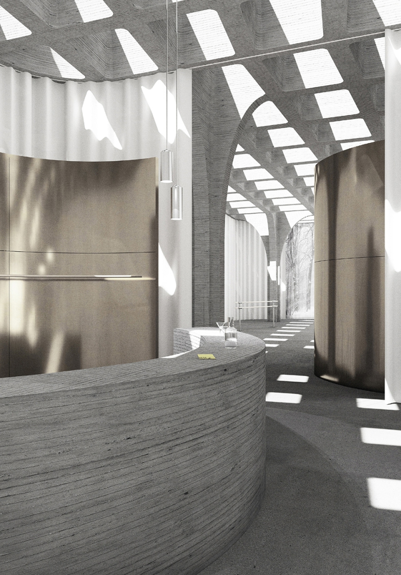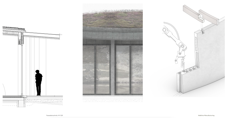 Zusammen mit dem Institut für Tragwerksentwurf entwerfen wir forschend zum zeitgemäßen Umgang mit dem Werkstoff Beton. Das Semester führt uns entlang eines der Forschungsschwerpunktes der TU Braunschweig dem Additive Manufacturing (AM) vom Tragwerkskonzept in die konstruktive Ausarbeitung des Entwurfs. Die komplexen und geometrisch beeindruckenden Tragwerke Pier Luigi Nervis werden durch diese neuen Verfahren nach über einem halben Jahrhundert wieder ökonomisch abbildbar. Anstelle von aufwendigen Schalungen in Handarbeit entstehen in additiven Verfahren gleichsam komplexe Bauteile ohne zusätzlichen Ressourcenverbrauch und praktisch fast ohne menschliche Arbeit. Wir begeben uns daher gemeinsam auf die Spuren Nervis und werden die Tragwerke und Lösungen für die Entwicklung unserer eigenen Tanztheater auf zeitgemäße Weise transformieren. Die zwei permanenten Spielstätten des Staatstheaters Braunschweig, „Großes Haus“ und „Kleines Haus“ werden um eine weitere ergänzt. Auf dem Werkstattgelände im Theaterpark entsteht ein eigenes Haus welches dem Tanzen gewidmet wird. Die additive Fertigung lässt zu, dass eine unendliche Zahl verschiedener Teile individuell vor Ort geprintet, gefräst, geschossen oder im Sedimentbett gedruckt werden kann. Hier setzt das Nachdenken über Materialreduktionen im Umgang mit dem an sich leistungsfähigen Material Beton gezielt an. Der frühe Einbezug additiver Fertigungsprozesse greift raumprägend in den konstruktiven Entwurfsprozess ein, stetig prüfend unter der Fragestellung: Wie kann Beton zukünftig so materialschonend wie möglich verwendet werden?