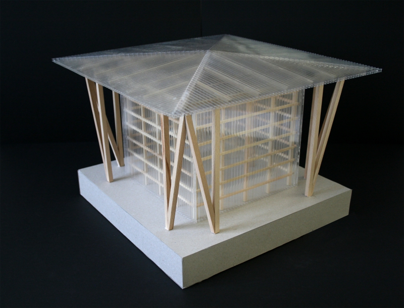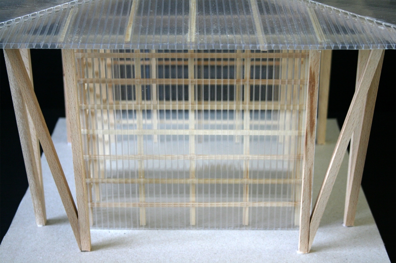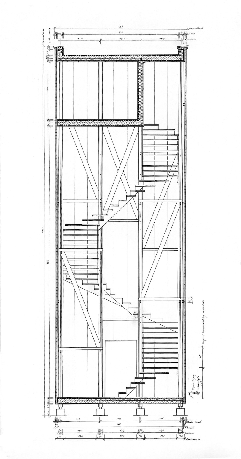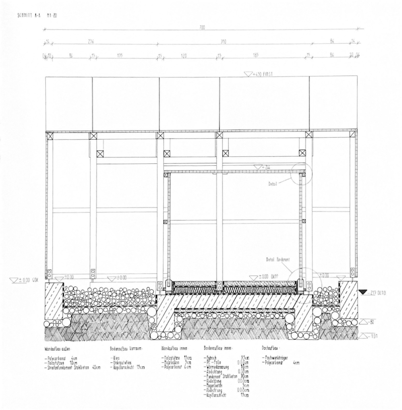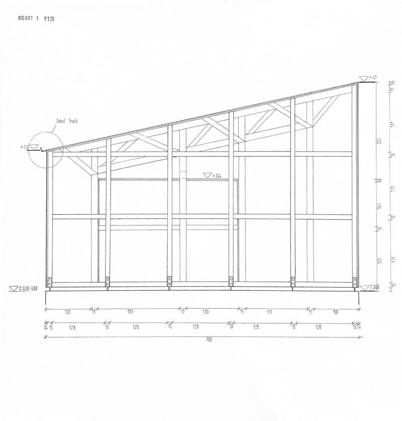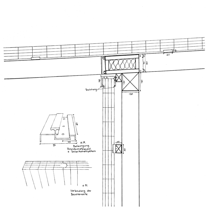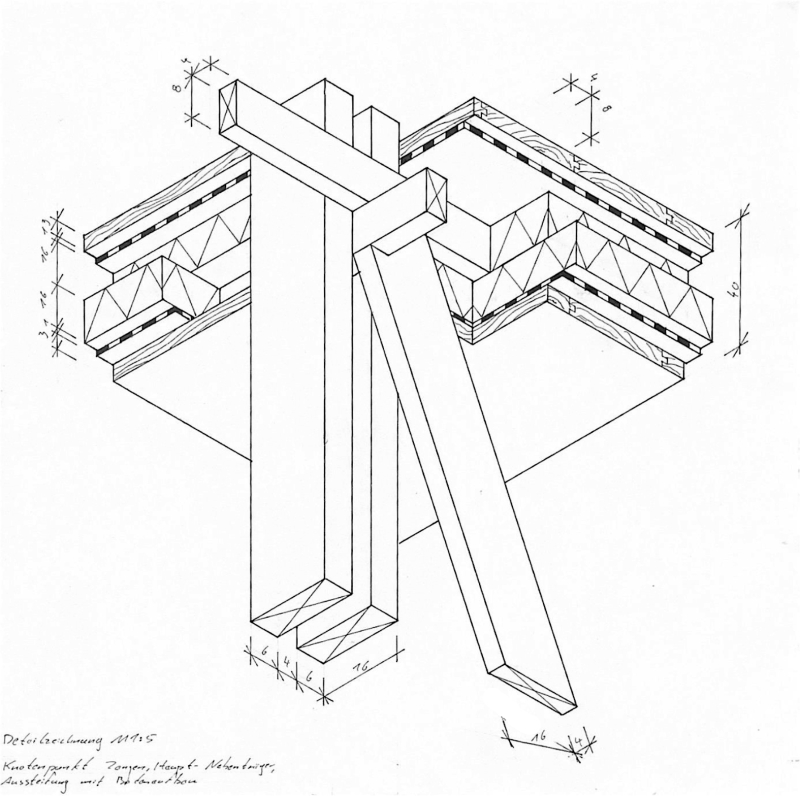 „Es scheint, als ließe sich hier eine Architektur auf quasi natürliche Weise aus den Bedingungen der Konstruktion entwickeln, eine Architektur,die sich selbst erklärt und die ihre Wirkungsweise [...] in der Erscheinung der Stäbe und Verbindungen verständlich macht.“ Martin Tschanz, Stand der Dinge, in: archithese, 05/1995