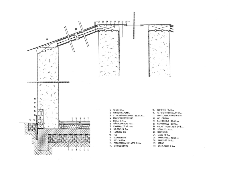 In Anbetracht des Einflusses des Bausektors auf die Klimakrise überdenken wir relevante Parameter für die Entwicklung eines architektonischen Entwurfs. Dazu gehört neben zahlreichen anderen Aspekten die Wahl der verbauten Materialien, die Prozesse hinter deren Gewinnung und deren Verwertung oder Rezyklierung nach der Nutzungsphase. Die Verwendung von Lehm als konstruktives Baumaterial hat eine lange Geschichte und rückt aufgrund seiner vielen positiven Eigenschaften im Bezug auf die genannten Aspekte wieder vermehrt in den Fokus des baukonstruktiven Diskurses. Lehm kann in weiten Teilen der Welt mit wenig Aufwand lokal gewonnen werden und ohne die Produktion von Abfällen restlos rezykliert werden. Das Bauen mit Lehm verspricht also Antworten auf drängende Fragen, mit denen wir uns als Architekt*innen bei der Entwicklung von verantwortungsvollen Projekten dringend auseinandersetzen müssen.Im zweiten Semester Baukonstruktion entwickeln die Studierenden Entwürfe in Lehmbauweise. Vor dem Konzipieren eines eigenständigen Projektes steht die Analyse gebauter Beispiele in Lehm und das Durchdringen der baukonstruktiven Logik sowie des Zusammenhangs zwischen dieser konstruktiven Verfasstheit und architektonischem Ausdruck.