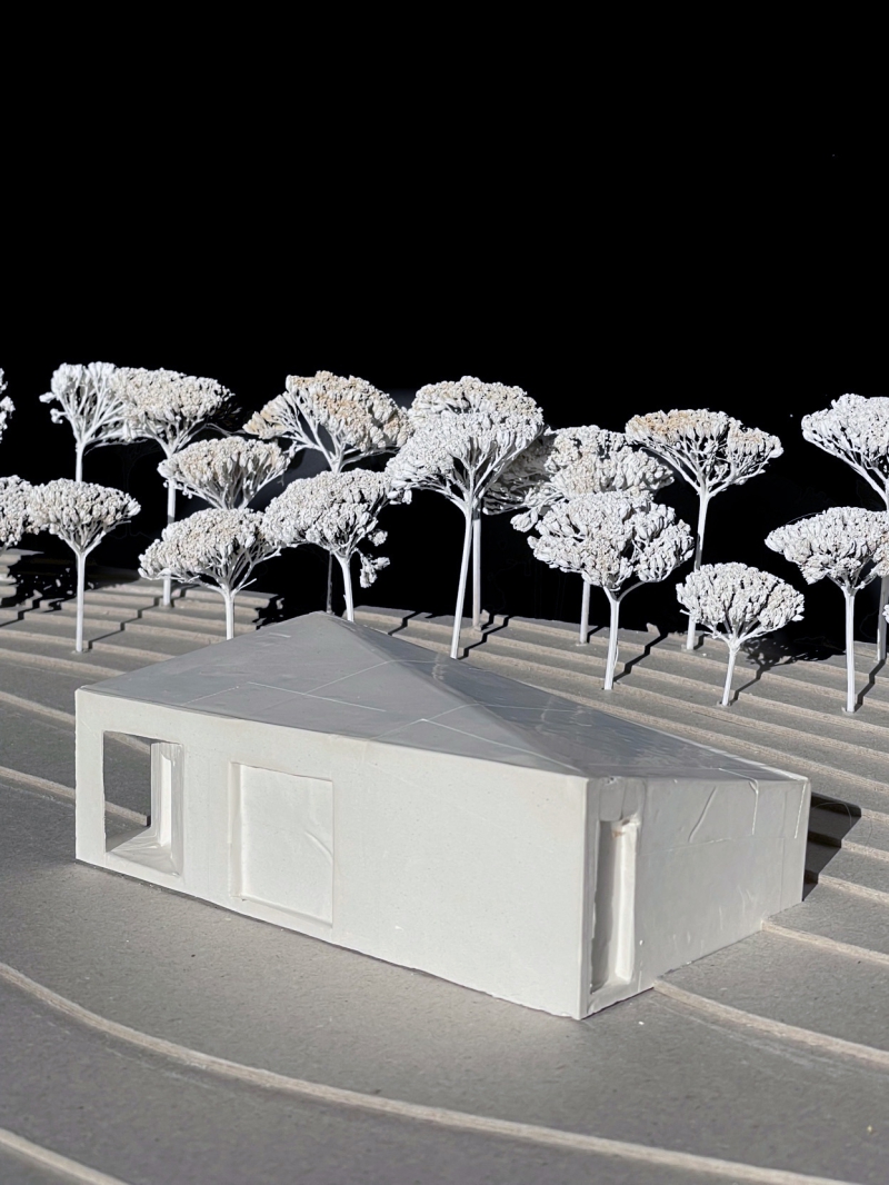Als Grundlage für einen eigenen architektonischen Entwurf werden künstlerische Werke aus verwandten Disziplinen und architektonische Referenzen analysiert. Die extrahierten Ideen, Konzepte, Eigenarten werden dargestellt und später in der eigenen Arbeit interpretiert. Die baukonstruktive Vorgabe für die Wetterschutzhütte ist der Mauerwerksbau in monolithischer oder zweischaliger Ausführung. Hierfür ist die eingehende Auseinandersetzung mit dem Material und dessen konstruktiven Konsequenzen und raumbildenden Eigenschaften von höchster Bedeutung, besonderes Augenmerk liegt auf dem Fügungsprinzip der Mauersteine und damit einhergehend auf der Ausbildung von Öffnungen, Ecken und Dachanschlüssen.