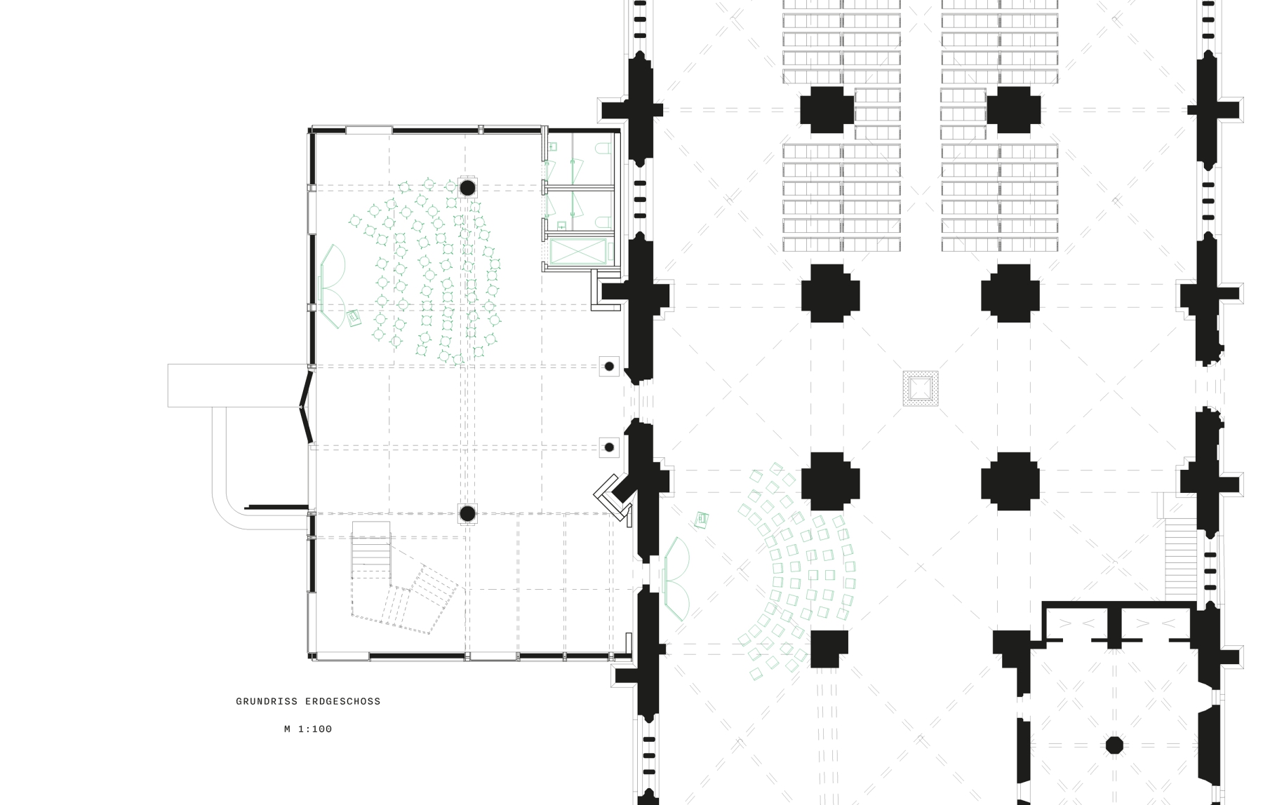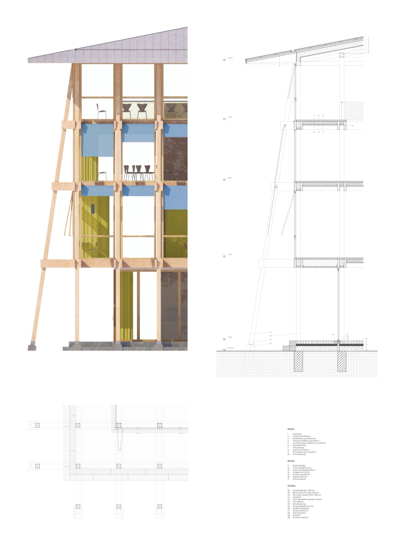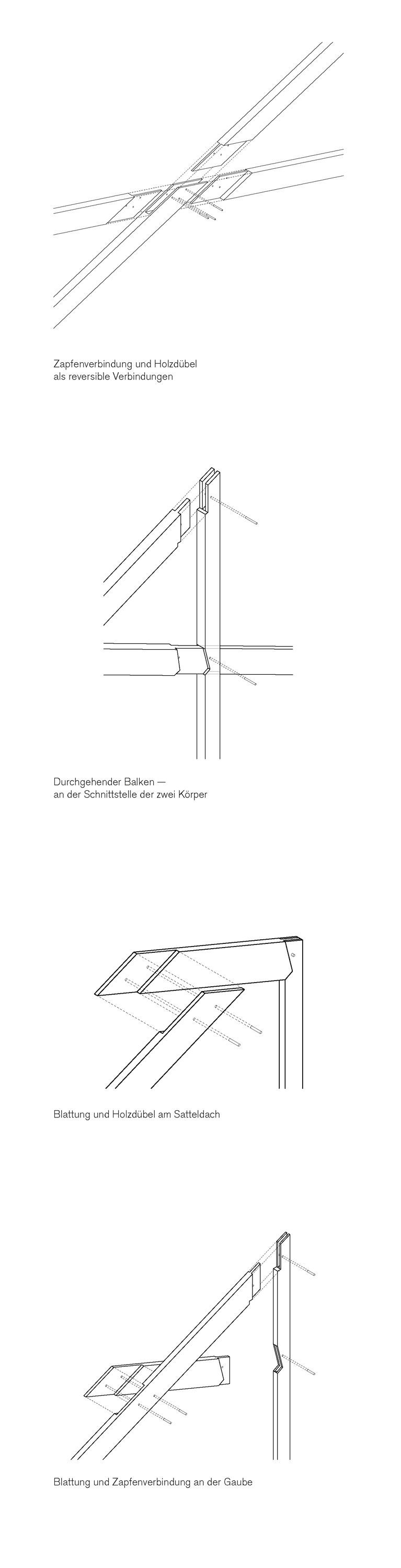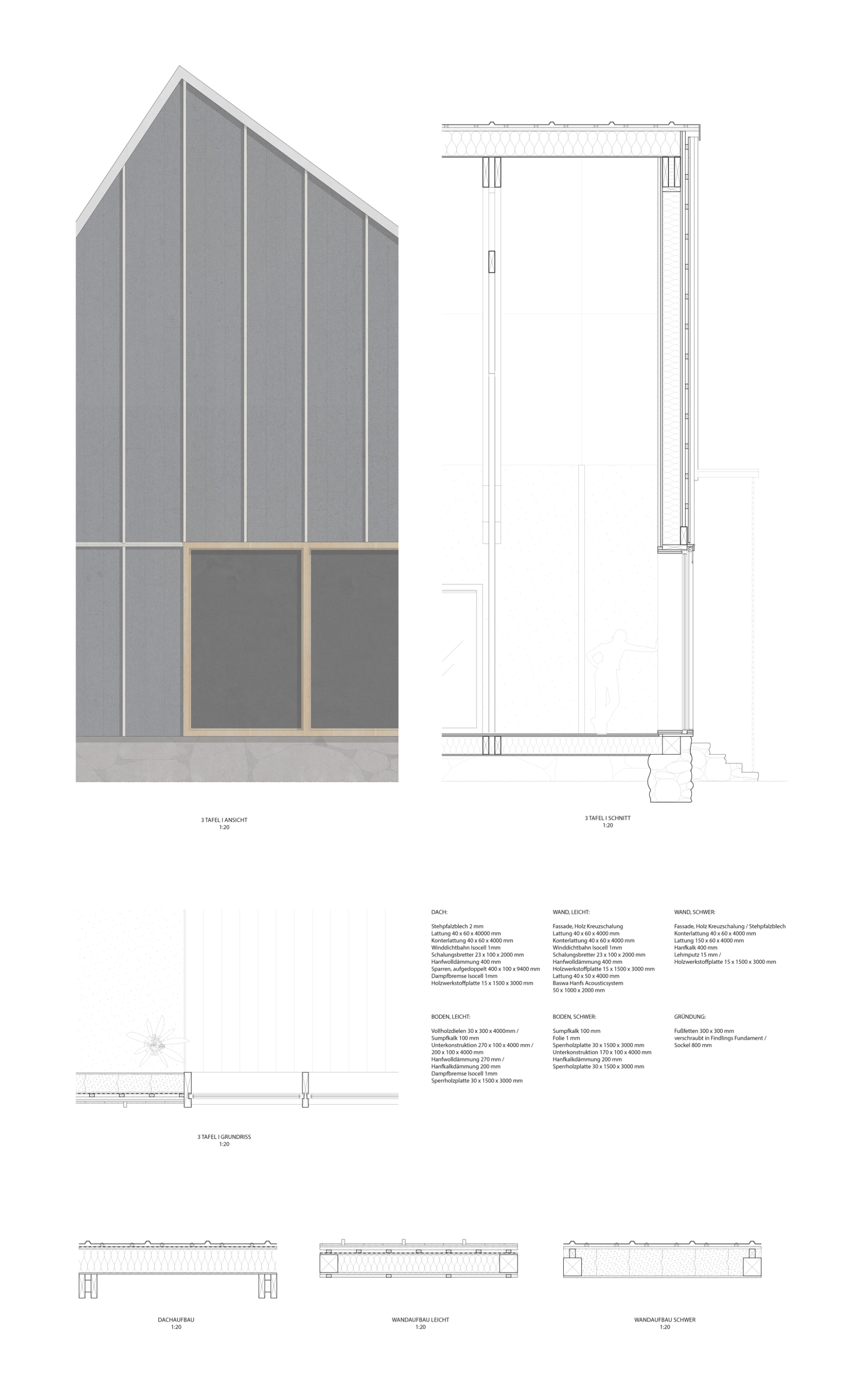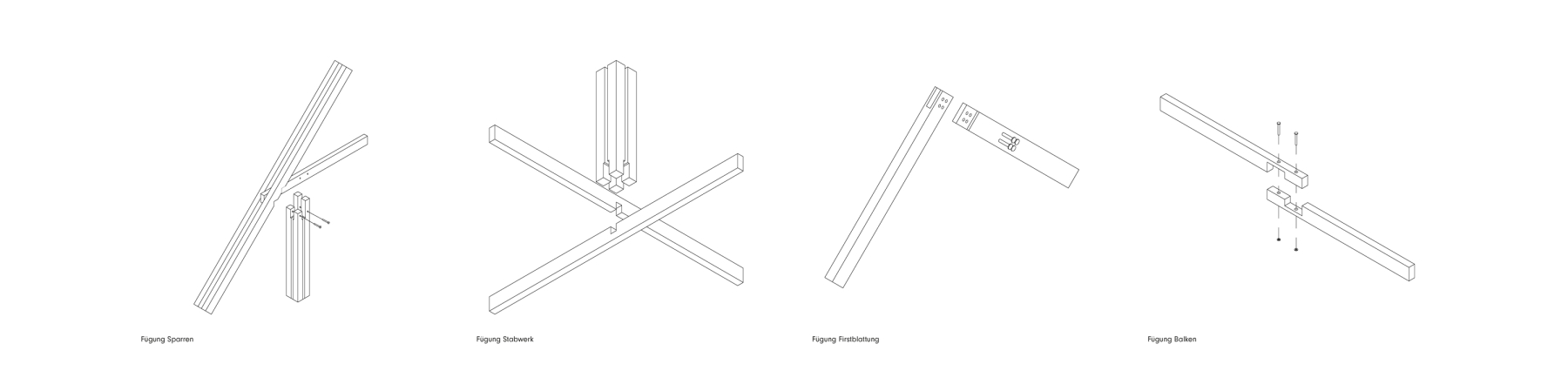 Auf der Suche nach einem angemessenen architektonischen Ausdruck innerhalb der Bauwende, orientieren wir uns zunächst an künstlerischen Arbeitsweisen, um sie anschließend baukonstruktiv in das architektonische Detail zu überführen. Der ursprünglich aus der bildenden Kunst stammende Begriff der Assemblage beschreibt das Fügen dreidimensionaler Objekte zu einem Kunstwerk. Mit dem architektonischen Entwurf als Form künstlerischen Ausdrucks behandeln wir auf baukonstruktiver Ebene jenes Fügen von Objekten in Form von Bauteilen bzw. -stoffen. Angesichts zunehmender Ressourcenknappheit und der Klimakrise, gilt es kritischen Bewusstseins über die geplante Lebensdauer hinaus zu planen. In diesem Sinne soll sowohl das Fügen als auch das Lösen im Sinne des Design for Disassembly als eine ganzheitliche Denkfigur den Entwurf durchdringen. Welche Auswirkung hat das Dreiergespann aus Assemble – Dissemble – Ensemble auf den Planungsprozess der Montage und den architektonischen Ausdruck in der Zeit dazwischen?
