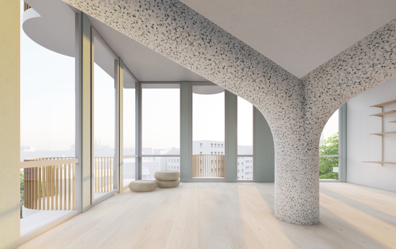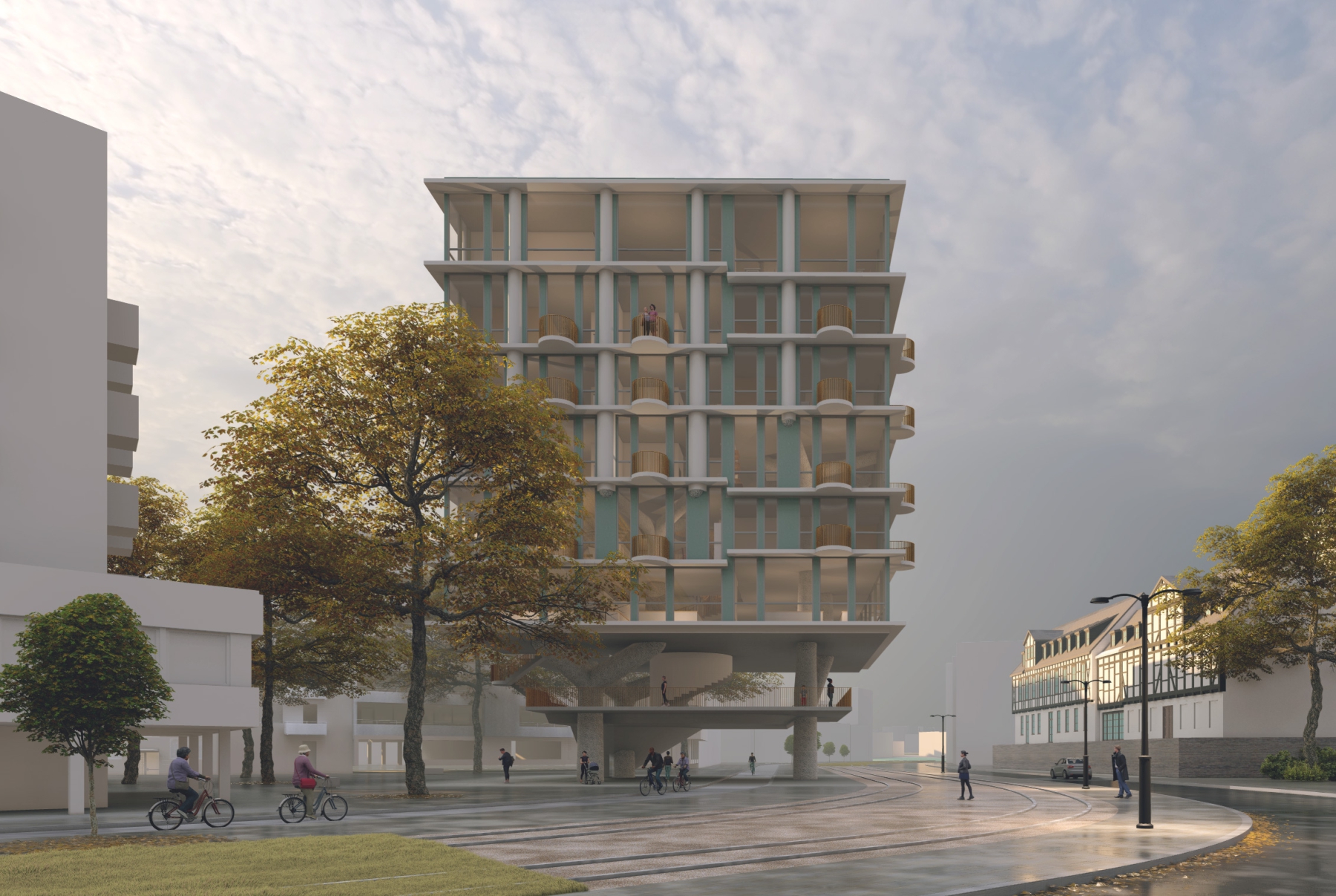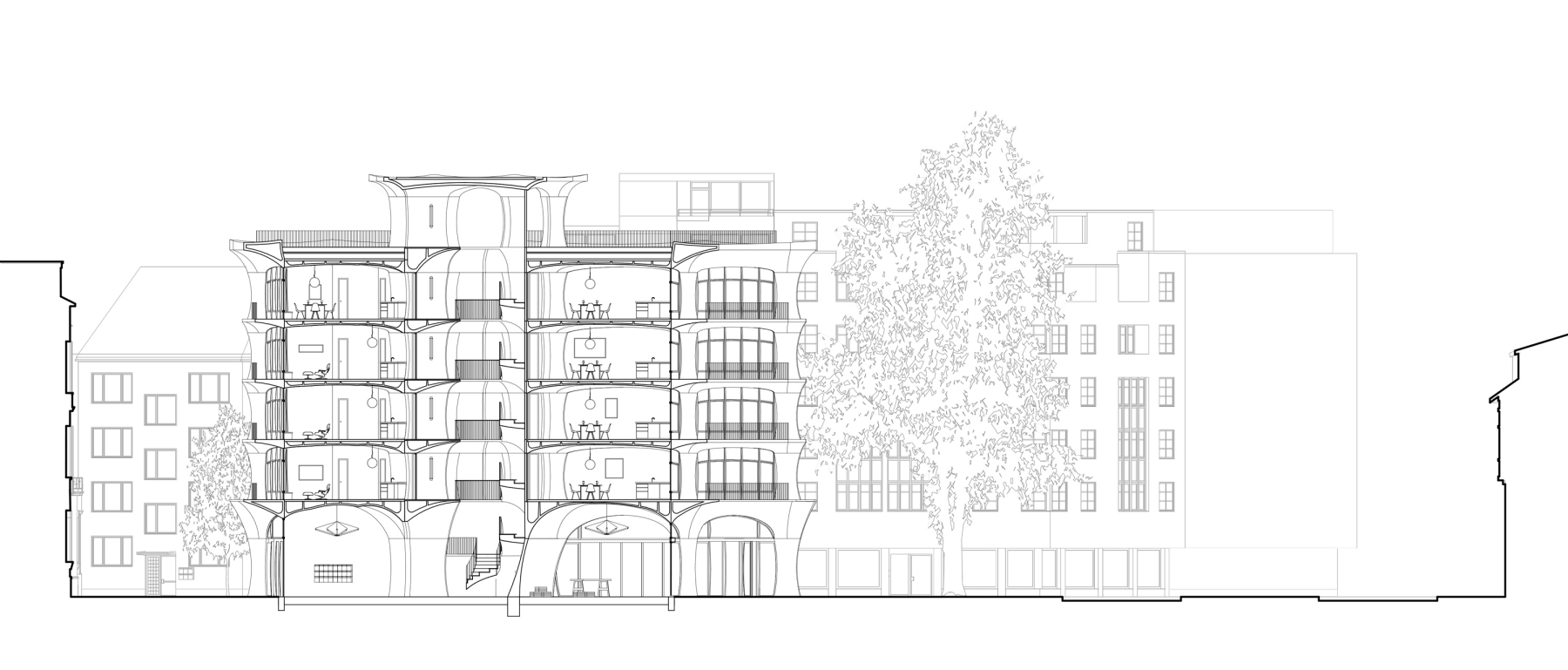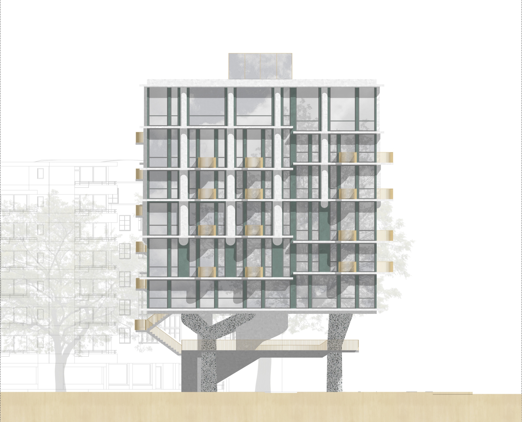 Additive Manufacturing (AM) bietet eine Vielzahl von technologischen Perspektiven, die in Zukunft alle Aspekte des Bauens beeinflussen werden: Materialität, Struktur, Detaillierung, thermische Hülle, Gebäudeklima. Mit dem "Werkzeugkasten" der AM-Methoden wird ein innerstädtisches Wohngebäude entworfen. Es sollen Strukturen entwickelt werden, die eine Balance zwischen Dauerhaftigkeit, Materialgerechtigkeit, Ressourcenschonung und flexibler, räumlicher Bespielbarkeit finden und die den Anspruch der Nachhaltigkeit in verschiedenen Facetten aufgreifen.