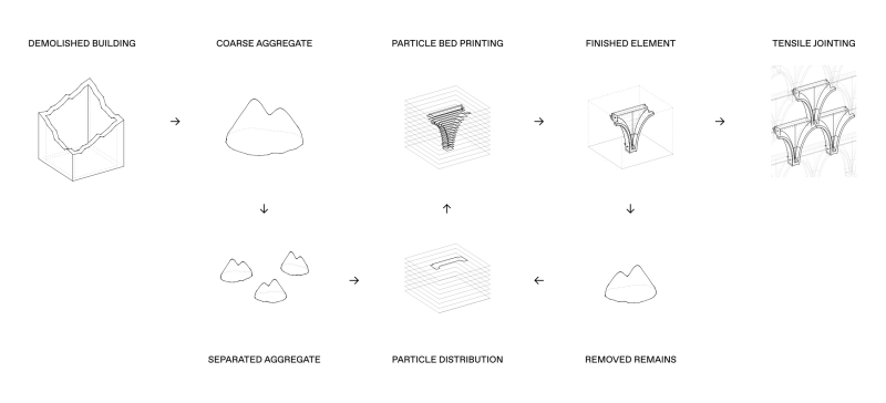 Mit dem Projekt "From Additive Manufacturing to Architecture" werden zwei Hauptthemen adressiert. Erstens: eine architektonische Form und Struktur für die Anwendung von additiven Fertigungsverfahren als Eröffnung neuer Perspektiven für die Ausführung von Massivbauten. Zweitens: Typologien gemischter und wohnlicher Nutzung, die sich in den kommenden Jahrzehnten verändern können und die intelligent mit der Baustruktur interagieren. Luigi Snozzi argumentiert Flexibilität mit einem massiven, scheinbar unflexiblen Material. Die Aussage zielt darauf ab, robuste, aber intelligente Raster und Strukturen zu schaffen, die während ihres gesamten Lebenszyklus eine Vielzahl von Funktionen aufnehmen können. Das Ziel dieses Entwurfsprojekts ist es daher, einen genaueren Blick auf langlebige Strukturen zu werfen, die mit den Methoden der additiven Fertigung effizient hergestellt, und die in einem ständigen Dialog zwischen dem AM-Konstruktionskonzept und flexiblen Typologien entwickelt werden. Die Vorgehensweise folgt dabei der Idee des explorativen Entwerfens: zunächst werden die technischen Rahmenbedingungen der additiven Fertigungsmethoden durchdrungen. Daraus folgt die Entwicklung nachhaltiger architektonischer Strukturen für eine flexible Langzeitnutzung.