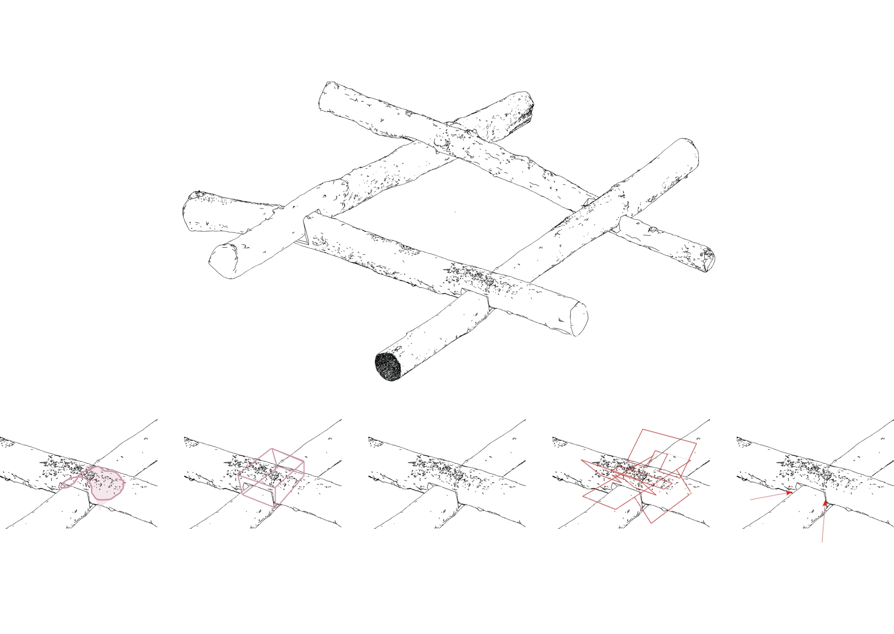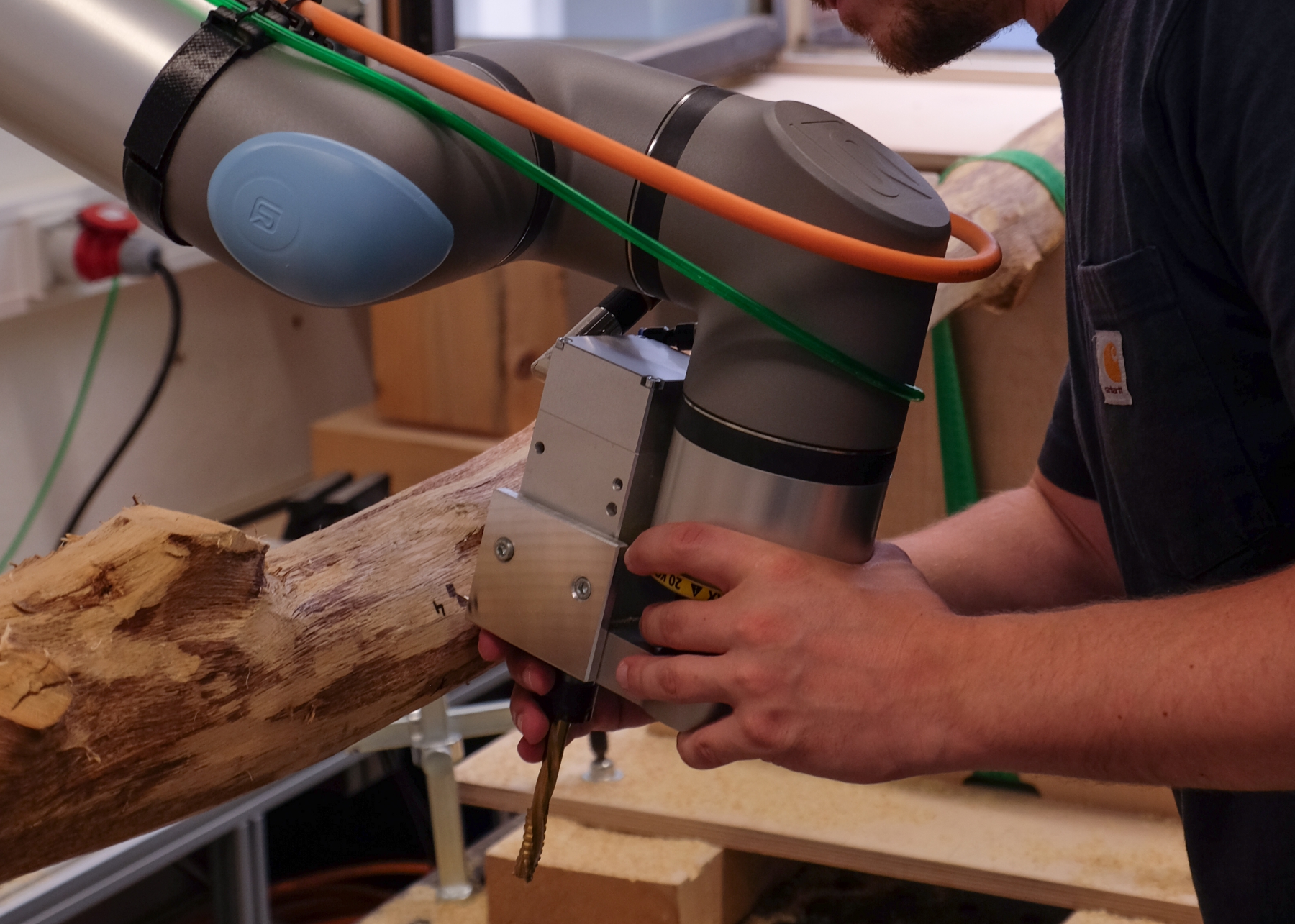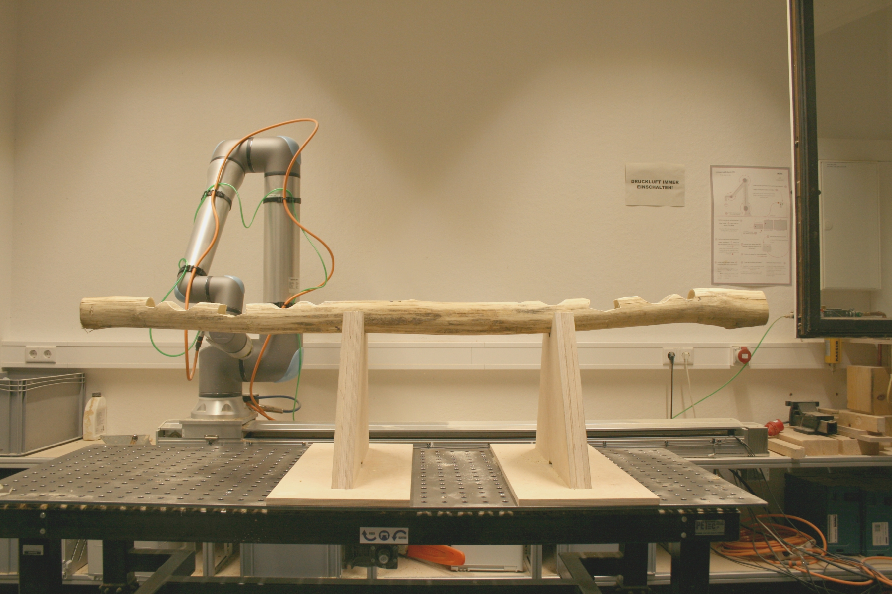 Der Entwurfskurs Robotic Timber Studio – Constructive Exploration untersucht digitale Planungs- und Fertigungsmethoden im Holzbau als Instrument für eine ressourcenschonende Baupraxis. Studierende entwickelten einen Prototyp für ein Dachtragwerk aus krummen, nicht standardisierten Hölzern. Jedes Holzelement wurde mit Hilfe von digitale Scanverfahren, parametrischer Modellierung und robotischer Fertigungwurde entsprechend seiner heterogenen Eigenschaften und spezifischen Form konstruktiv eingesetzt. Das Projekt nutzt digitale Technologien um die materialgerechte und strukturell effiziente Nutzung bislang wenig genutzter Holzressourcen zu ermöglichen.