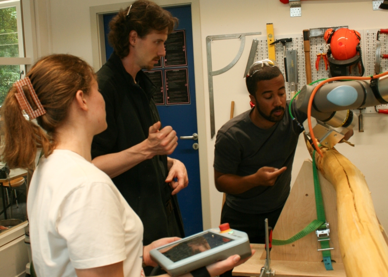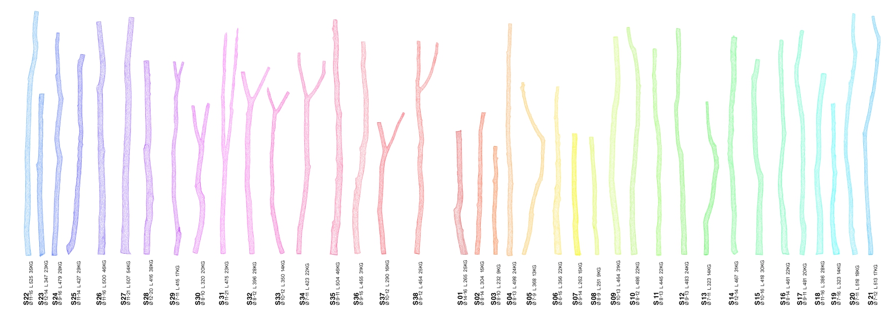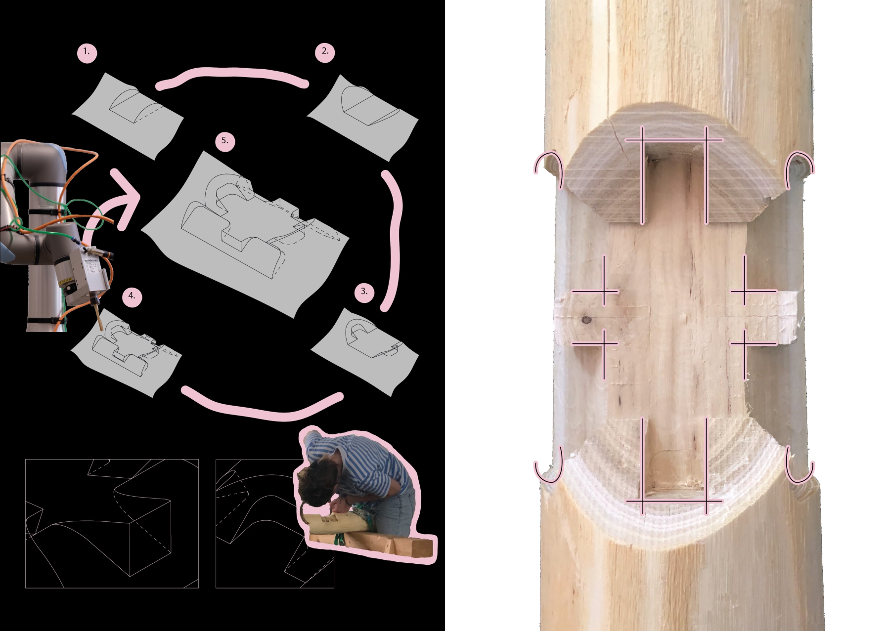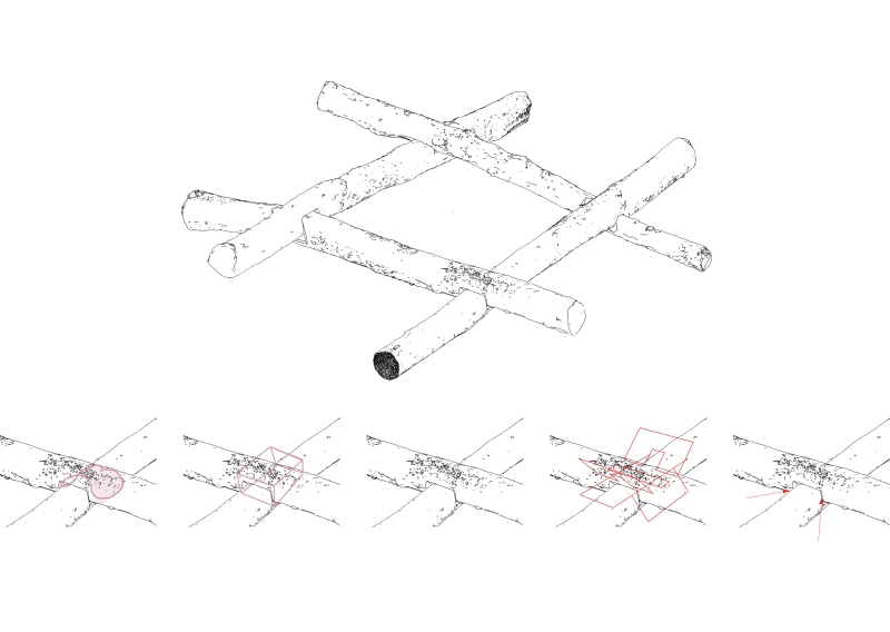 Der Entwurfskurs Robotic Timber Studio – Constructive Exploration untersucht digitale Planungs- und Fertigungsmethoden im Holzbau als Instrument für eine ressourcenschonende Baupraxis. Studierende entwickelten einen Prototyp für ein Dachtragwerk aus krummen, nicht standardisierten Hölzern. Jedes Holzelement wurde mit Hilfe von digitale Scanverfahren, parametrischer Modellierung und robotischer Fertigungwurde entsprechend seiner heterogenen Eigenschaften und spezifischen Form konstruktiv eingesetzt. Das Projekt nutzt digitale Technologien um die materialgerechte und strukturell effiziente Nutzung bislang wenig genutzter Holzressourcen zu ermöglichen.