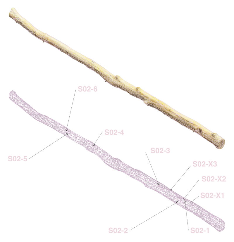 Der Knotenpunkt verbindet die natürlich gewachsenen Hölzer im reziproken System und muss formschlüssig, präzise sowie statisch belastbar sein. Was zunächst wie eine einfache Verbindung erschien, entwickelte sich als komplexe geometrische Herausforderung. Ausgangspunkt war eine ideal gedachte Geometrie für die robotische Fertigung. Doch im Prozess wurde deutlich, wie stark reale Parameter die Umsetzung beeinflussen.